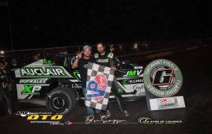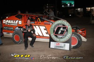 Encore une fois les pilotes avaient répondu présents en grand nombre alors que toutes les catégories avaient des pelotons fort garnis. 44 voitures Sportsman étaient dans les puits pour la 2e manche de la Coupe Garage P. Auclair. Faisant les frais de la finale principale de la soirée Steve Turcotte et Martin Lessard partaient sur la première ligne pour la finale de 40 tours. Dès les premiers tours, un contact survient dans le droit arrière et William Racine se retrouve avec une suspension brisée et c’est en n’ayant plus de contrôle sur la direction de sa voiture qu’il percute le mur à l’intérieur de la courbe #3 de plein fouet. Heureusement pour Racine, les dommages ne sont que matériels. Il s’en suit ensuite un jeu de chat et de la souris entre Steve Turcotte et Samuel Charland. Les 2 pilotes sont au-dessus de la mêlée et mènent le peloton. Moïse Pagé se place au 3e rang après une frayeur qui l’avait fait reculer de quelques positions. Félix Murray, Michael Richard, Lessard et Picotin s’échangent des positions. Charland est en mesure de maintenir le rythme de Turcotte et lors du dernier tour, il y va d’une ultime tentative et vient tout près de Turcotte dans la courbe #4 mais Turcotte résiste et va chercher une première victoire en carrière. Samuel Charland termine 2e et Moïse Pagé complète le podium. Félix Murray et Martin Lessard prennent le 4e et 5e rang. Alexandre Salvas avait remporté le B-Main.