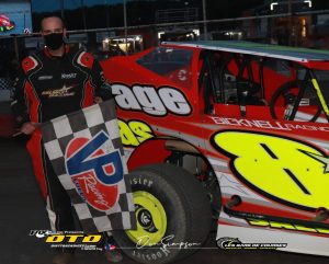 Les Modifiés étaient aussi en piste pour 40 tours et on a assisté à tout un spectacle. Dès les premiers tours, David Hébert et Steve Befnard se pointent à l’avant du peloton. François Bernier vient ensuite prendre la 3e place. Les 3 pilotes de tête sont rapides et arrivent dans les retardataires. Hébert est en mesure de dépasser ceux-ci et Bernard l’imite. Malheureusement pour Bernier, il s’accrochent avec une voiture plus lente et doit repartir de la 12e place. À la relance, Steve Bernard et Steve Bernier s’offrent en spectacle et à plusieurs reprises ils passent côtes à côtes sous le signaleur. Parti 21e, Mario Clair remonte le peloton et se place dans le top 4. En fin de course, Steve Bernard cède sa 2e place à Steve Bernier et par la suite Mario Clair parvient lui-aussi à le dépasser. C’est dans cette ordre que prend fin la course. Hébert remporte la victoire devant Bernier, Clair, Bernard et François Bernier. Yan Bilodeau poursuit son bon début de saison avec une 6e place. Bussière, Desjardins, Pelletier et Whitteker complètent le top 10. Raphaël Lessard a bien fait lors de cette première course en carrière en Modifié alors qu’il a fait tous ses tours et a ramené la voiture au 24e rang.
