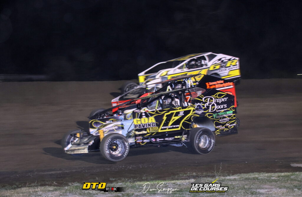 Mais au final, Bernier s’est montré à la hauteur. Prenant la tête de la course, il a repoussé les assauts répétés d’Herbison et s’est révélé imparable ce soir-là, remportant finalement la course pour décrocher sa troisième victoire en carrière dans la série et s’assurer son deuxième titre consécutif dans l’Ogilvie’s 358 Modified Series.
